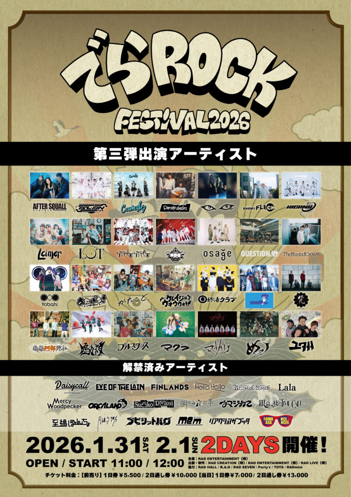 RAD CREATION & RAD ENTERTAINMENT presents でらロックフェスティバル 2026に出演決定しました!