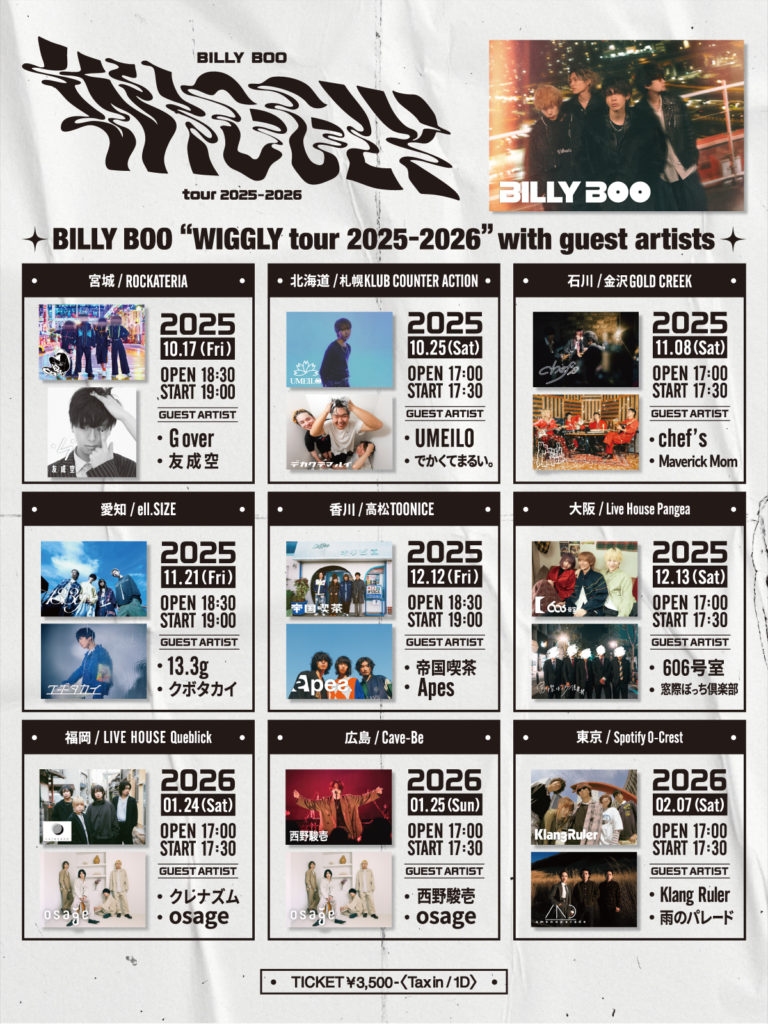 BILLY BOO “WIGGLY tour 2025-2026″に出演決定しました!