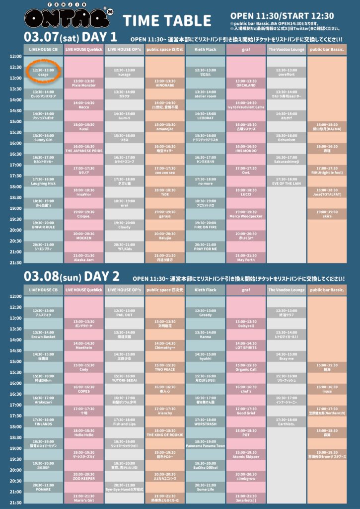 osageは1日目、3/7(土) 12:30〜 LIVE HOUSE CBに出演!